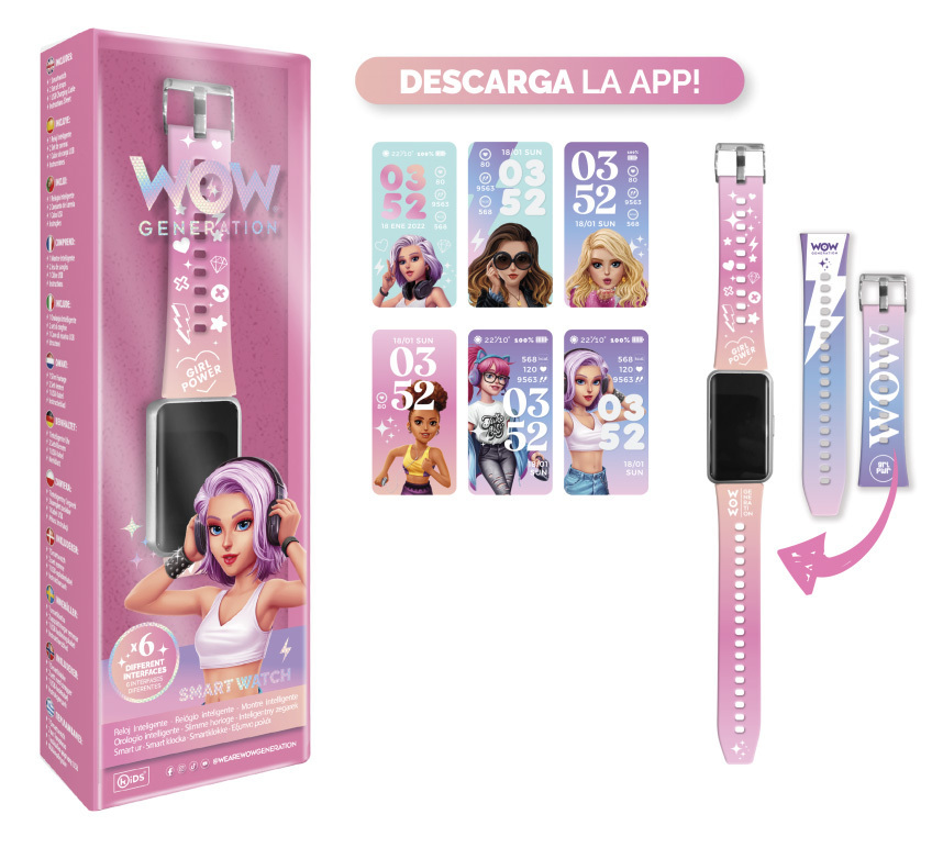 Το smartwatch γενιάς WOW είναι η προσθήκη που περιμένατε. Εξατομικεύστε την προφύλαξη οθόνης και τη ζώνη ρολογιού σας για να προσθέσετε το δικό σας στυλ ή να ταιριάζει με την καθημερινή σας εμφάνιση. Είναι το μοντέρνο έξυπνο ρολόι για όλα τα κορίτσια WOW. Να είστε έξυπνοι, να είστε WOW!