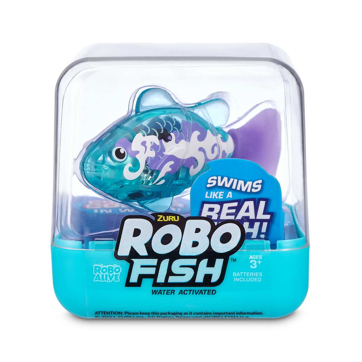 Τα νέα ZURU Robo Fish της Robo Alive με μια βουτιά είναι τα πιο εμβληματικά ρομποτικά κατοικίδια που κολυμπούν στην πραγματικότητα. Ρίξτε τα στο νερό και παρακολουθήστε τα να κολυμπούν προς 5 διαφορετικές κατευθύνσεις και να βουτούν μέχρι τα 6 πόδια καθώς η τεχνολογία ενεργοποίησης του νερού της ZURU ζωντανεύει αυτά τα ψάρια ως μαγικά. Υπάρχουν 6 χρώματα για συλλογή και έχουν ακόμη και αλλαγή χρώματος που ενεργοποιείται με το νερό. Παρακολουθήστε τα λέπια τους να αλλάζουν χρώμα μπροστά στα μάτια σας, μετά τραβήξτε τα ψάρια σας έξω από το νερό, τρίψτε το χέρι σας πάνω από τα λέπια και αυτά θα αλλάξουν ξανά στο αρχικό τους χρώμα. Αυτά τα ρεαλιστικά ψάρια αποτελούν το τέλειο παιχνίδι για κατοικίδιο ή φάρσα.